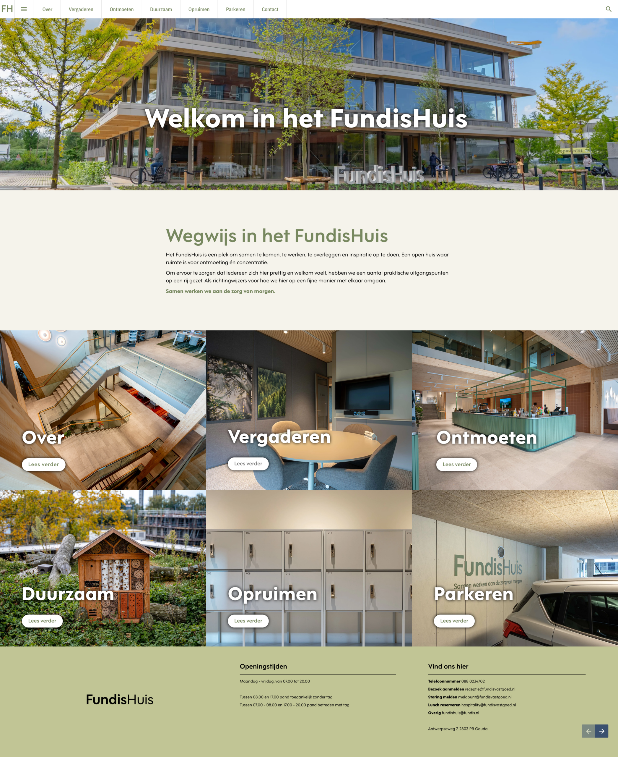Toen het FundisHuis nog in aanbouw was, werd de website gebruikt als informatiebron over het bouwproces en de visie achter het pand. Inmiddels is het gebouw volop in gebruik, maar de website vertelde dat verhaal nog niet. De inhoud en beelden liepen achter, waardoor bezoekers geen goed beeld kregen van wat het FundisHuis vandaag de dag te bieden heeft.